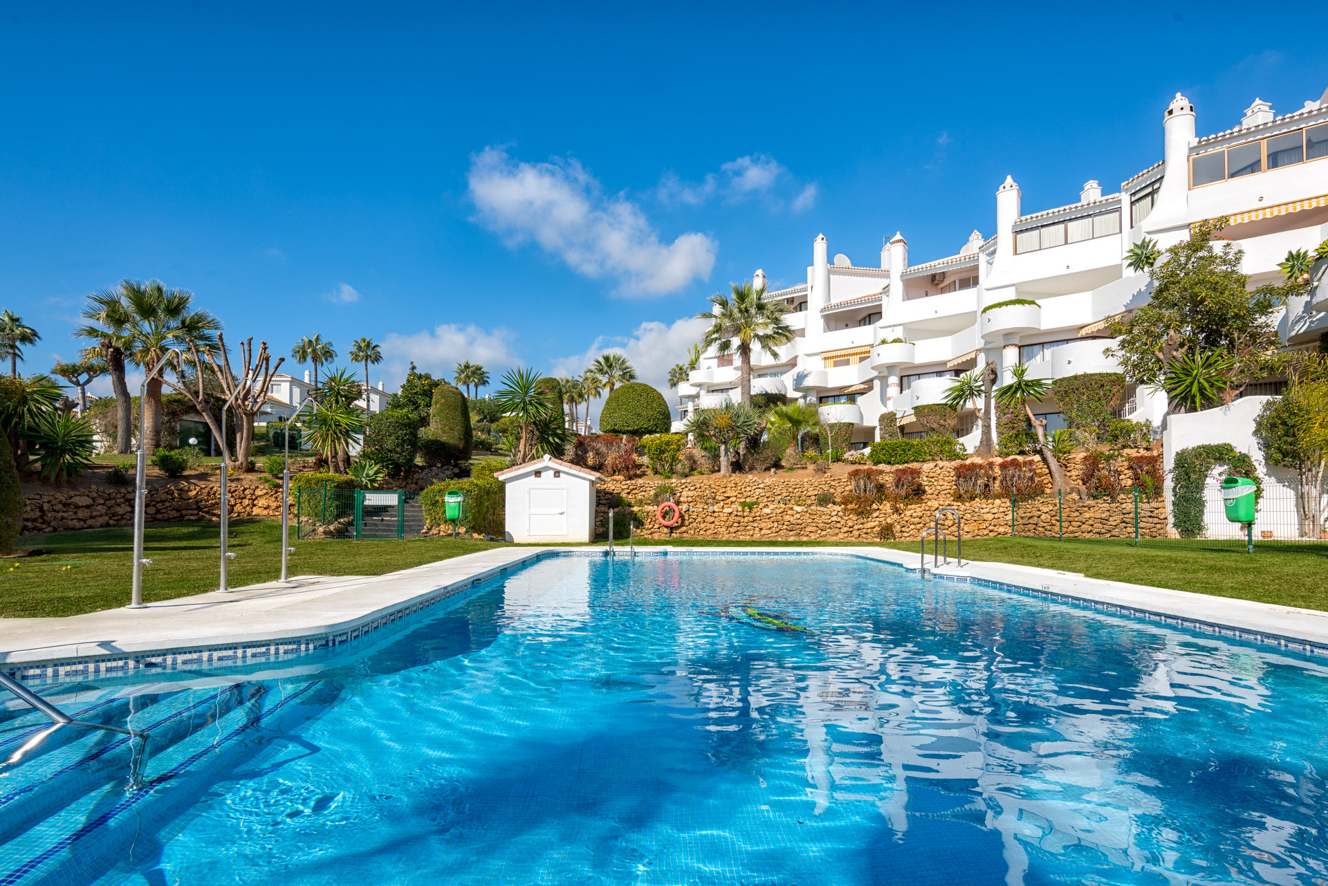 Este apartamento de un dormitorio en el último piso con hermosas vistas y una piscina privada en la terraza se encuentra en Calahonda, a pocos pasos de restaurantes y supermercados locales, así como del famoso paseo marítimo y la playa.