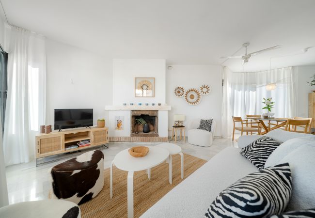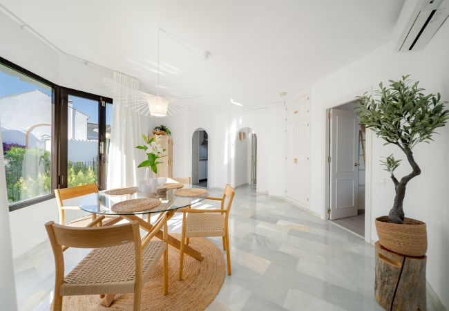 Este excelente apartamento de 2 dormitorios y 1 baño (con ducha sin bañera) es una planta baja con jardín en CALAHONDA GOLF tiene vistas al campo de golf La Siesta.