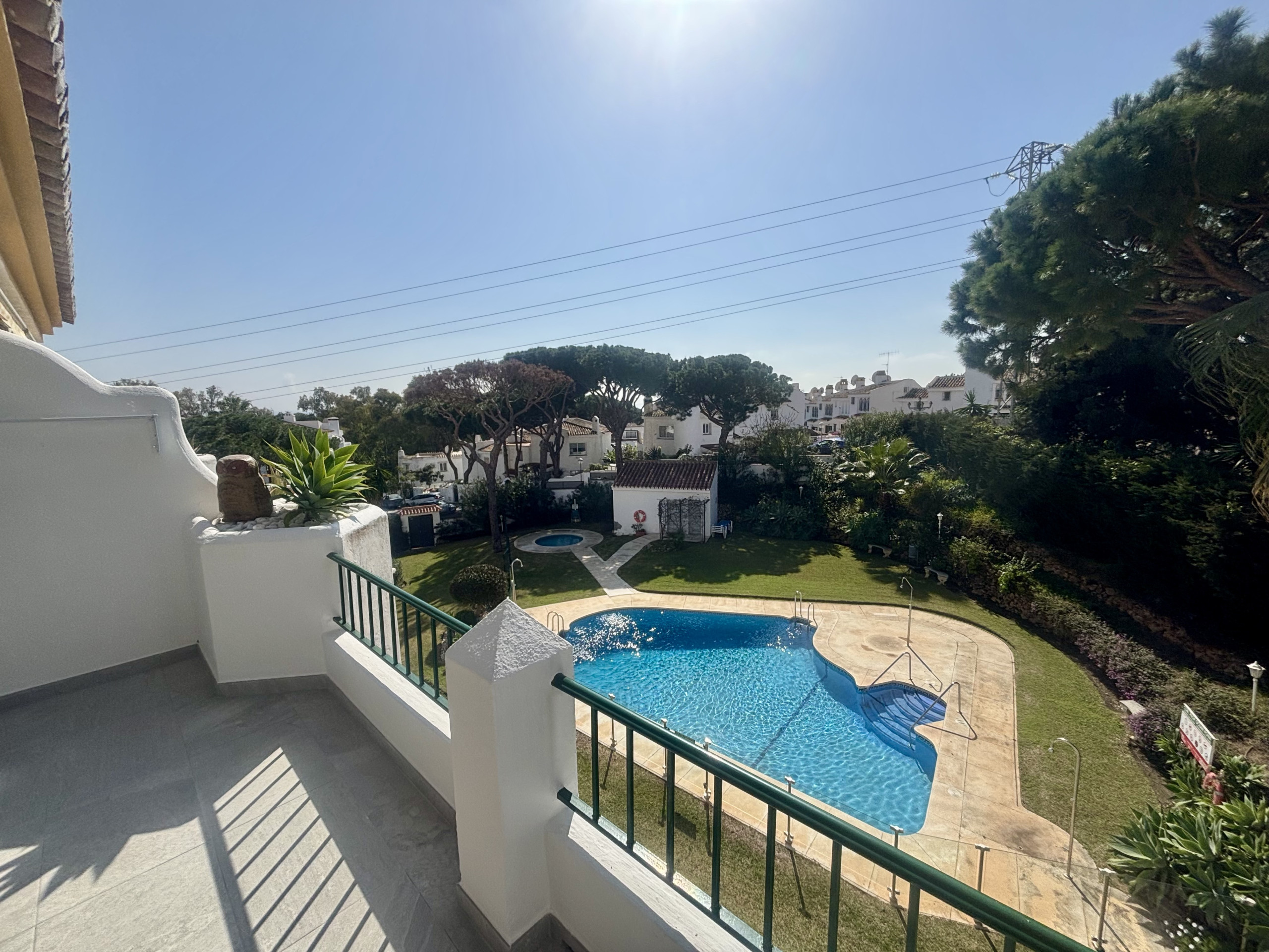 ¡Las puertas que dan al salón conducen a una gran terraza que tiene su propia piscina de 3mx3m! El complejo está rodeado de atractivos jardines y una gran piscina comunitaria situada en una tranquila zona residencial.