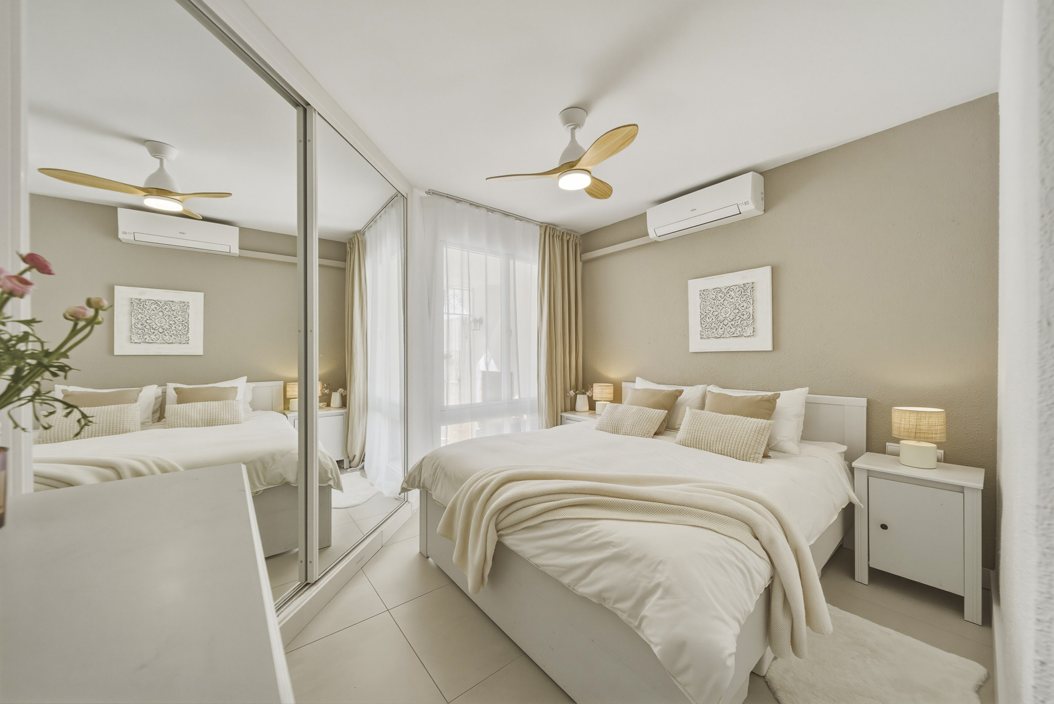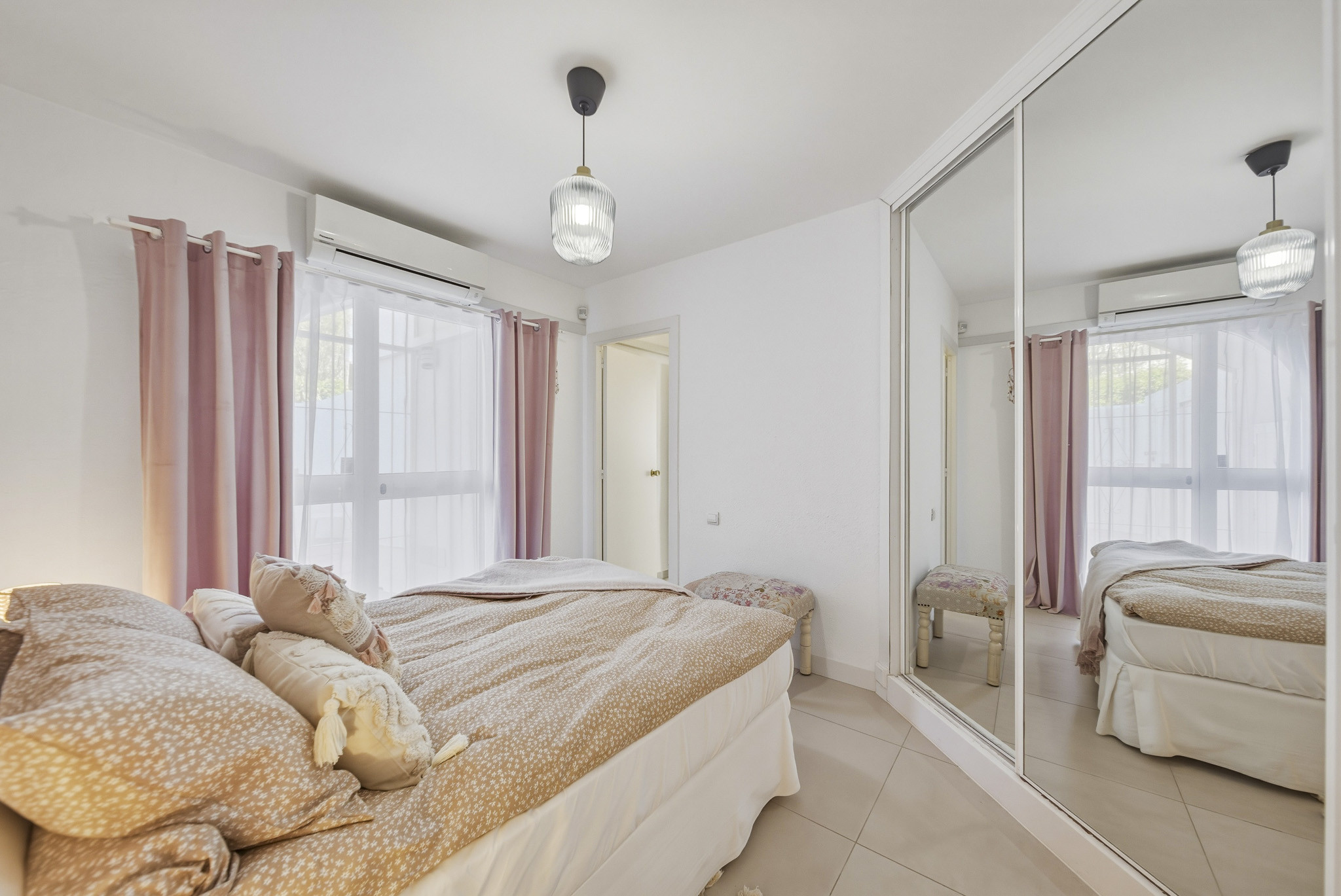 El apartamento está bien amueblado y equipado con aire acondicionado y calefacción en todo el espacio y ventiladores de techo en ambas habitaciones.