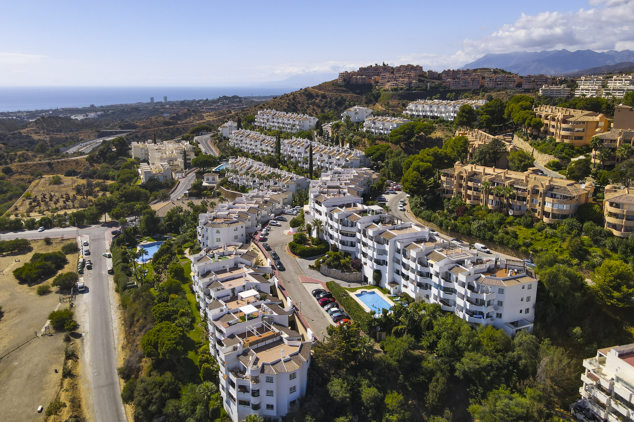 2 bedroom, 2 bathroom ground floor apartment. Beautiful apartment situated on the Calahonda hills. Bright and modern and furnished to an extremely high standard, lovely lounge/diner, two double bedrooms, two bathrooms, fully fitted kitchen and a sunny terrace with panoramic views of the surrounding area and out over the Mediterranean. The apartment has air conditioning / heating in both bedrooms and the lounge. Only a few minutes walk to local bar and restaurants and just a 10 minute drive to the beach and amenities, a perfect choice for all. Please note there are 2 flights of stairs to the front door of this apartment and to get to the pools.
